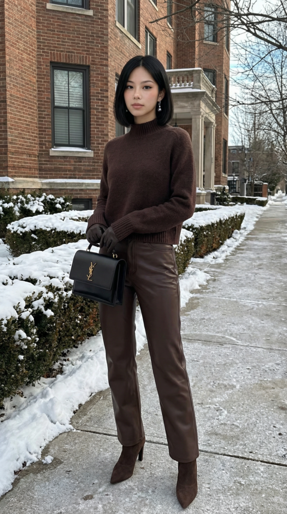 7. Turtleneck Sweater With Leather Pants and Boots